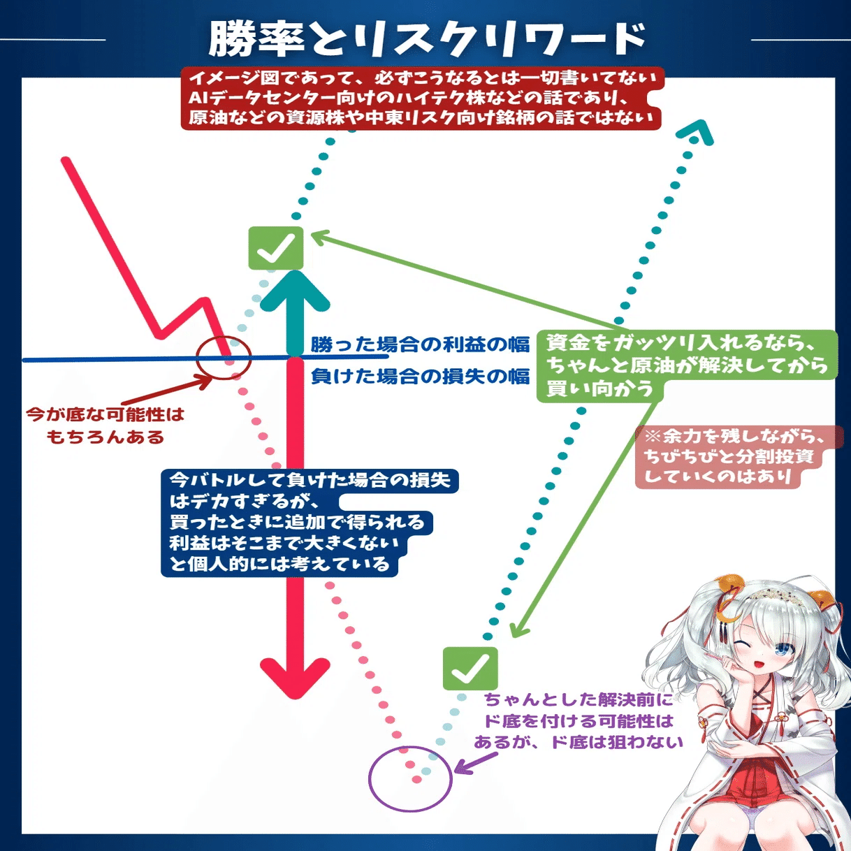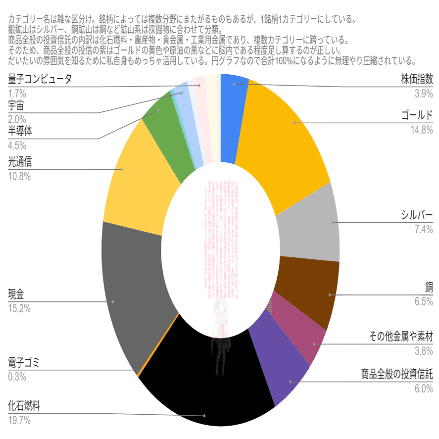 ・怖ければ現金を厚めにして、インフレ負けを防ぐために商品全般の投信を入れて、後は深いところからのポジションや恩株だけ残して全逃げも手ではあるかも(?)