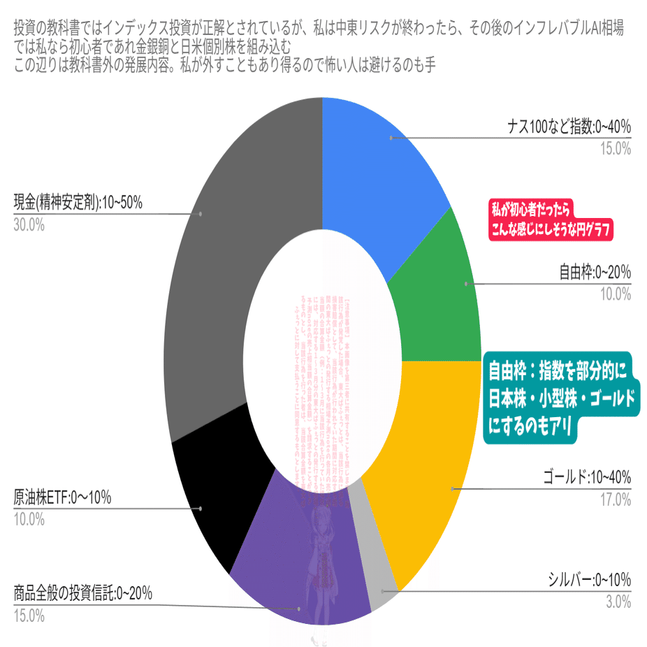 ・めっちゃムズい。中東リスクが続くと考えるか続かないと考えるか、どっちでも良いように組み替えるかという性格次第で大きく変わる。