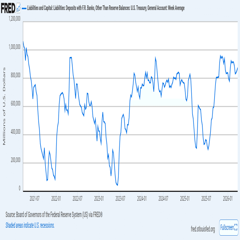 ✅TGA(財務省一般会計)(貯金箱のうちの1つ、政府の貯金箱の残高グラフと思ってください)