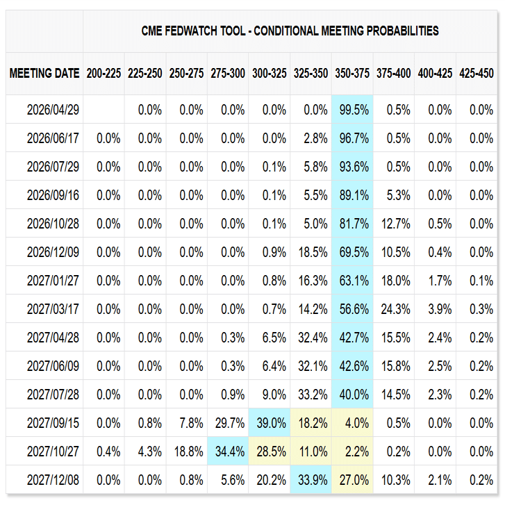 このリンク→CME FedWatch Tool→Probabilitiesで最新の画像を見れます。